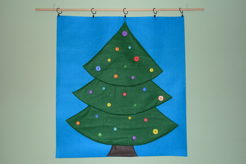 I am so happy that I managed to finish our felt Jesse Tree. For some reason a bunch of our fabric stores closed so I couldn’t find any large pieces of felt. I ended up buying the felt for this tree in a city 2,000 km away! (I was there visiting family). We won’t start using our tree until December 1st because I only had the patience to make 25 ornaments. Now that it’s hanging on the wall we can’t wait to get started!