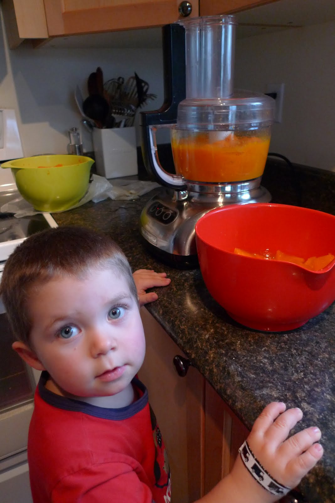 In the past I would laboriously cut the skin off the pumpkin, cube it and then steam it in a huge pot. What was I thinking! Don’t try this unless you have a lot of energy to expend. Instead try this method. So, so much easier!