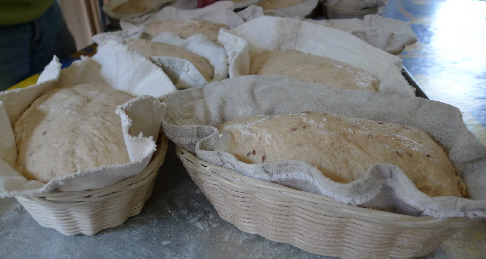 I’ve read about starting a sourdough culture in several DIY books; the directions were conflicting at best. One recipe asked for grapes, another for a combination of flours, and another recommended buying a starter. In fact, you don’t need anything other than water and flour to start a sourdough culture. The yeast in the environment and in the flour are enough to create a chef (mother culture). However, getting a good sourdough culture can take time. At this course, we were each given a piece of sourdough starter to take home. Tomorrow, I will begin taking care of this new creature and hopefully together we’ll make some delicious naturally leavened bread.