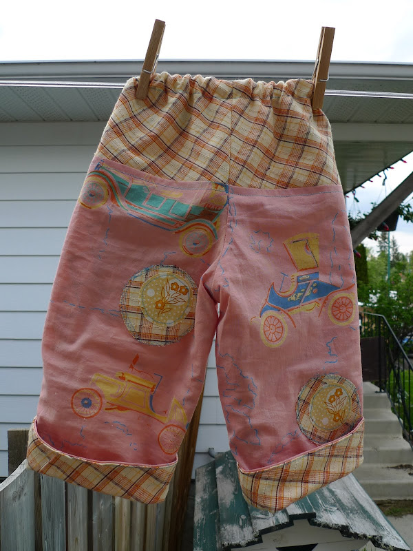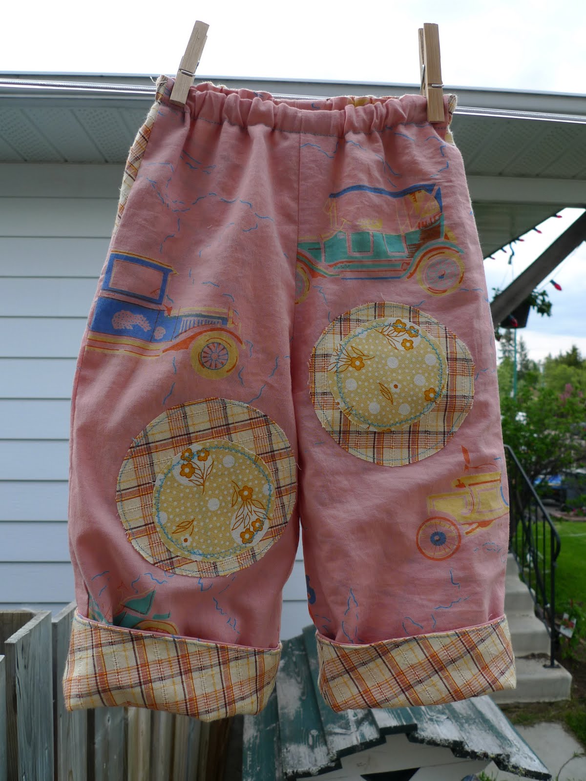 I found your blog via Elisa. The pants are adorable and I am really hoping that my library has a copy of that book. I've been wanting to repurpose some old/outgrown clothes and this would be a great project to try.