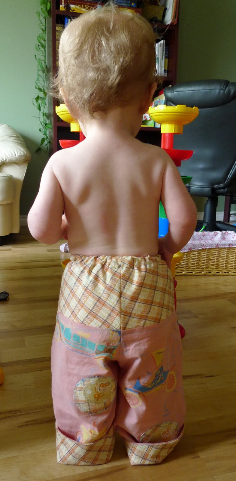 Super cute pants! You should sew a pinafore type top to go over them, that way you could see the cute bum! I just love pinafore tops.