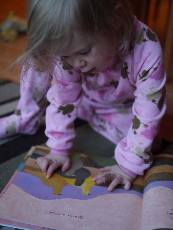 Then I heard a little voice. My son exclaimed that his sister was awake. She fumbled down the stairs into the living room and was pulled towards the shoes by her brother who explained with excitement that treats were left behind by St. Nicholas. Quietly she looked at the book and pointed out the colourful birds. Then Teddy squawked and we moved into our morning rhythm of preparing breakfast.