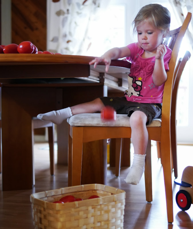 | Involve your kids! My five year old strained thirty pounds of tomatoes all on his own. |