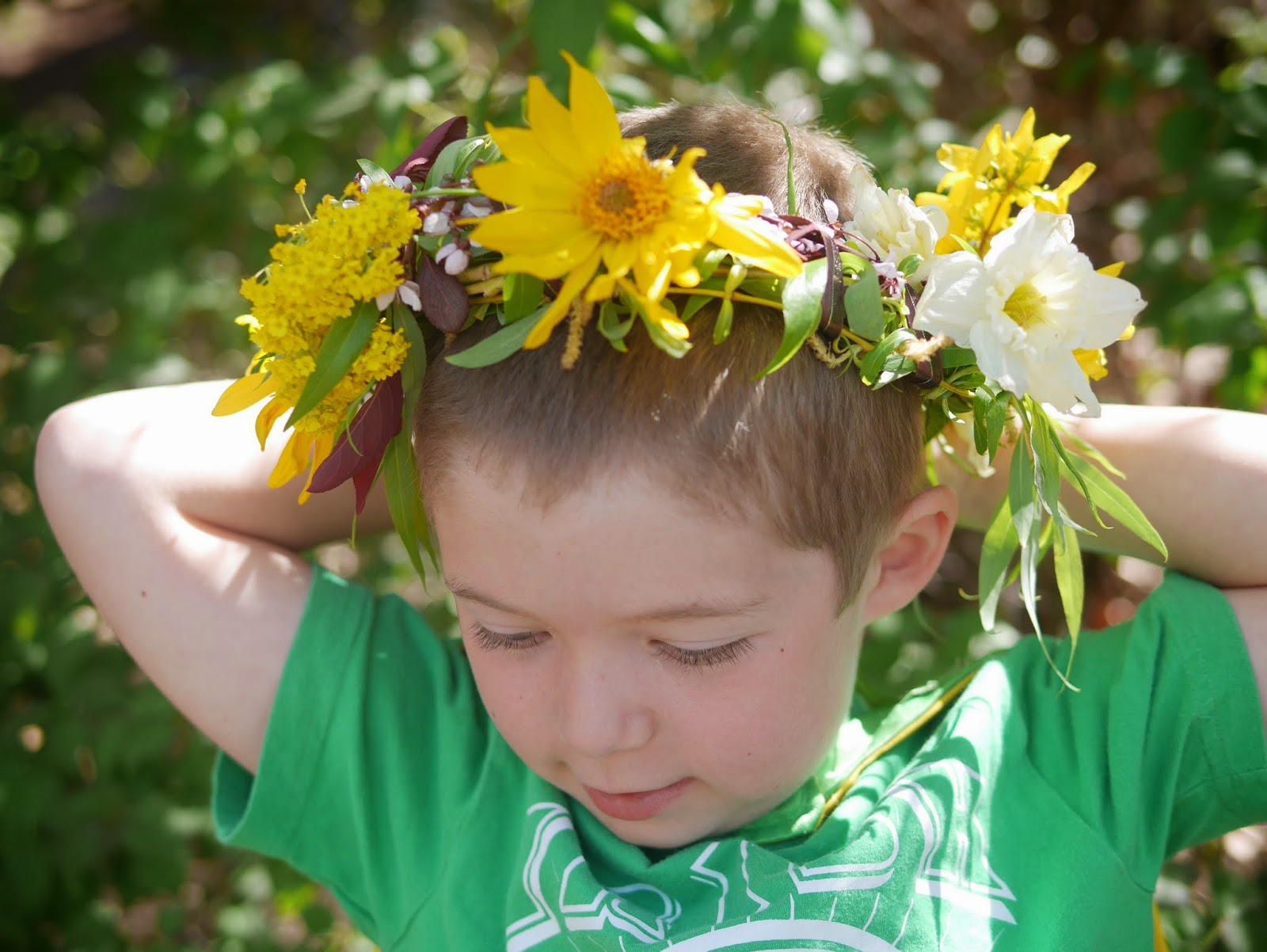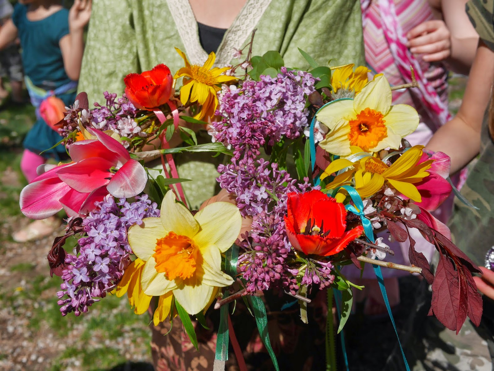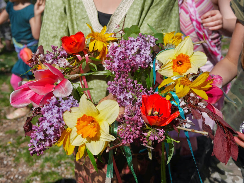 Today was the perfect May Day. Mamas and their daughters wore beautiful dresses, some of boys wore colourful capes. The children gathered around a picnic table and wove together flower crowns. The crowns were made of willow branches and covered in balsam root flowers, lilacs flowers, daffodils, ribbons and other pretty things. Even my eldest son was keen on making his crown. My sister set up a face painting station nearby and had a steady flow of children eager to have their favourite thing painted on their face. I saw flowers, frogs, snakes and even a R2D2 proudly displayed on little cheeks.
