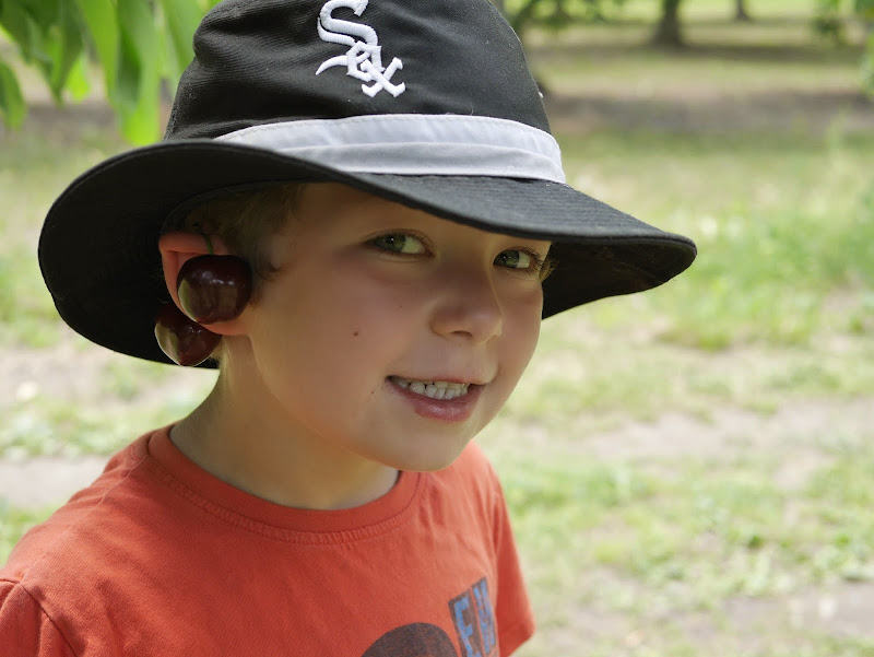 After Covert Farms we drove south to Hillside Orchards which was recommended to me by a friend. What a great place! We picked their Titan cherries ($.199/lb) which are amazingly sweet and juicy. The cherries are not organic, but the owners are conservative with their use of pesticides and send in their fruit for testing to measure residual pesticides. My children were very keen on picking the cherries and there were even some that Teddy and Claire could reach without using a ladder. I treated my children to alarmingly blue bubblegum ice cream which they enjoyed immensely. We even got to hold some adorable kittens which only resulted in a long conversation about how we aren’t buying a kitten today, or tomorrow… or in a few year (my husband is allergic to cat dander).
