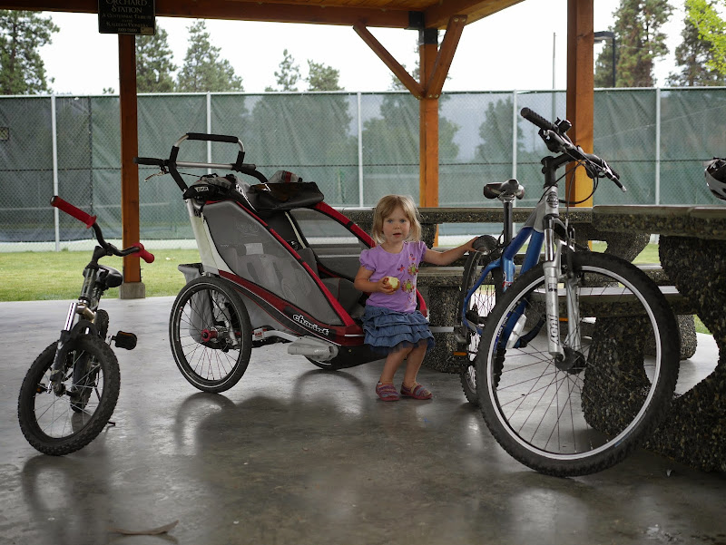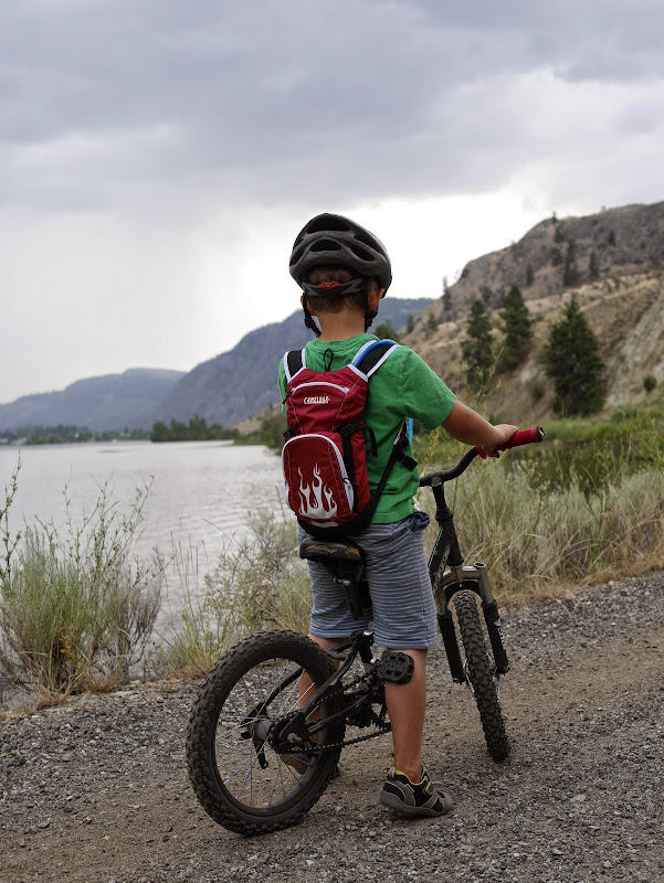 My eldest recently decided that he didn’t need his training wheels anymore. The defining moment occurred when he crashed his bike into the lake and had to ride home with only one training wheel. I think he might have learned how to ride without training wheel sooner if our street was more conducive to beginner bikers, but our street is quite hilly. Now that he’s happily graduated to a two wheeler we’ve been exploring the Kettle Valley Rail Trail a couple times a week.