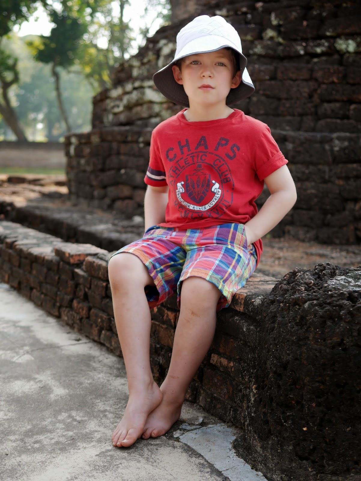 We spent most of our time exploring Wat Mahathat which is where the children discovered a pond filled with tadpoles. While the children were captivated by the tadpoles we took a moment to sit by the pond and enjoy the sights. Some of us struck up a conversation with a very interest couple from Switzerland who have explored many part of the world in their camper. My husband and I share the Teddy chasing duty which is always extra fun around a body of water.