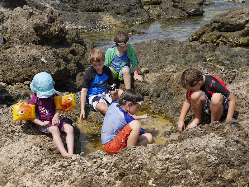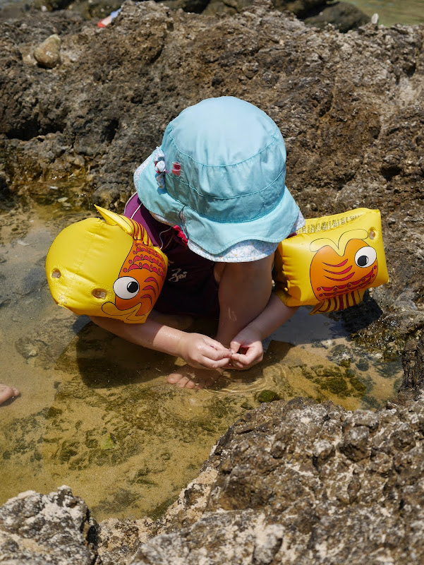 From Big Buddha we made our way southwards back towards Ya Nui beach. Because we arrived later in the day most of the shade had disappeared but for one hundred baht ($4 cad) each we rented three umbrellas and these provided us with shelter from the sun. While we were at the beach the children explored the large outcroping of rocks for hermit crabs and my husband enjoyed snorkeling among the coral. And for the first time Teddy played in the water like a little minnow. He has been very tentative around water for the longest time so it was such a pleasure to see him playing in the waves.