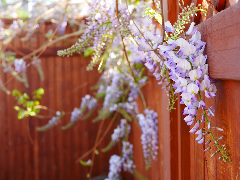 Even though our nights are cool the peas, broad beans, lettuce, radishes and spinach plants are thriving. This past Tuesday I also planted parsnips, swiss chard, carrots, beets and kale seeds, alongside the onions starts I received from my friend last week. Around the rest of my yard the apple trees are blossoming and leaves are slowly filling our various trees, vines and bushes. I was happy to see that my grape vines survived the winter, unlike the previous year, and that the purple and white wisteria and lilacs are beginning to bloom. The flowers are so beautiful!