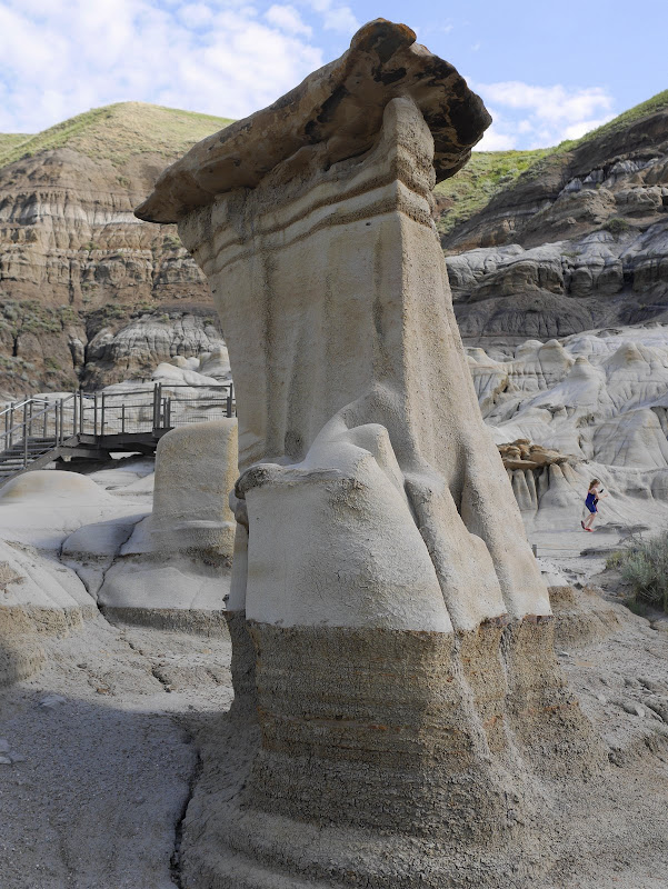 When I visited this site twenty years ago there was only a sign and a gravel parking lot. Now, in an effort to preserve these unique pillars, the area is completely cordoned off with wires and surrounded by a dedicated metal walking path. There are also a shelter and toilets in the parking lot for tourists. If you are driving to Drumheller to visit the Royal Tyrrell Museum take a short drive east to see the Hoodoos too. It is well worth it.
