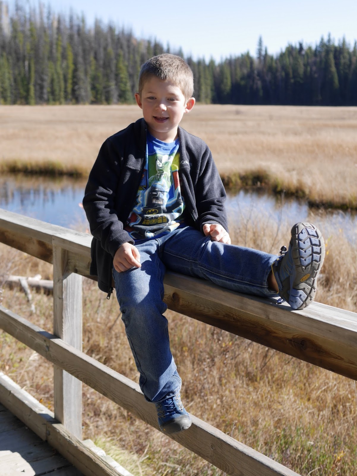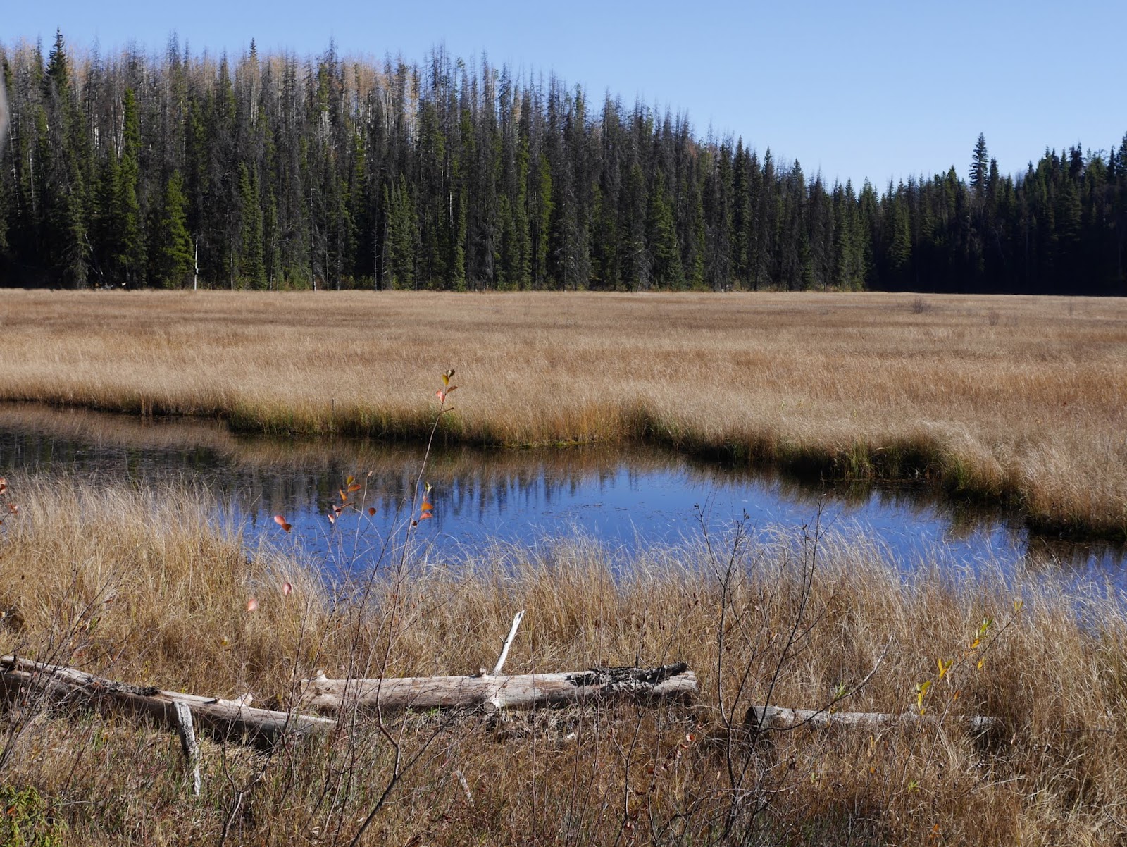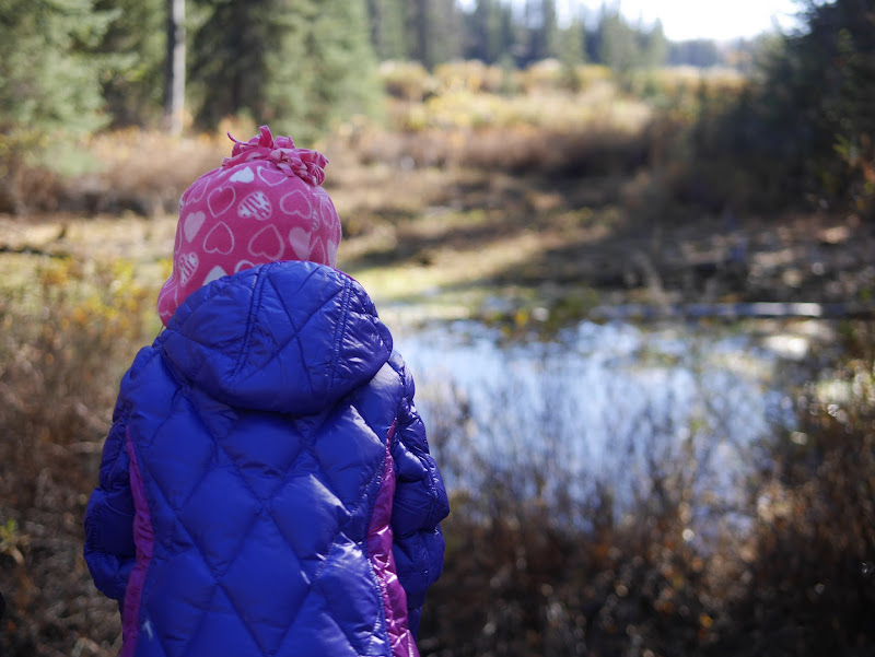 Among the eskers are several small kettle lakes which were created by large chunks of ice left behind by the glacier. These little lakes, marshes and ponds create a unique wetland that support a variety of plant and animal species. Surrounding the lakes and marshes is a mixed forest of Douglas fir, lodgepole pine, spruce, aspen and birch. My sister, a geographer, joined us on the hike and taught the children ways to identify the various trees: looking at bark, touching evergreen needles, noting the shape of branches. We all enjoyed our adventure through Eskers Provincial Park and hope to explore the longer trails in the next few years.