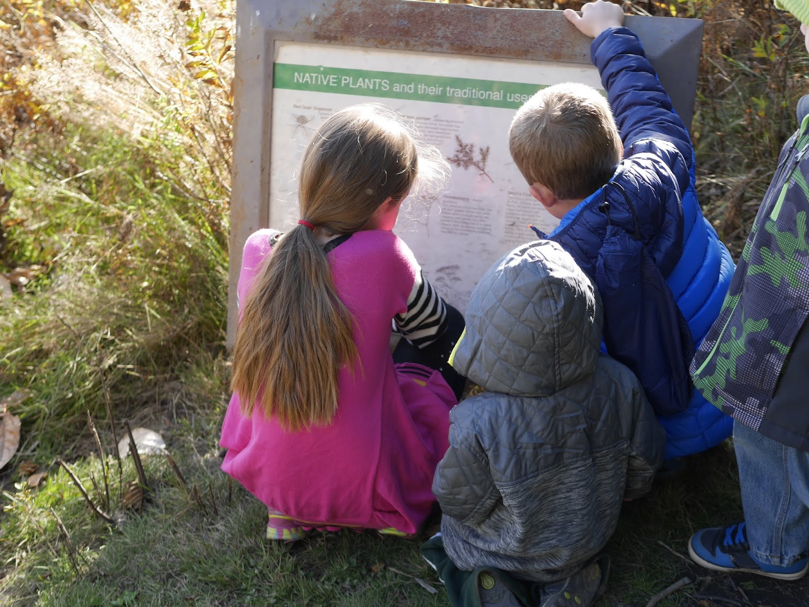 Ferguson Lake Nature Reserve is a perfect area for place based learning. It offers a nice three kilometer interpretive hike that loops around Ferguson lake. There are many interesting features along the way: a lake, a long dock, various bridges and boardwalks, a dilapidated homestead and trapping cabin, resident beavers and plenty of nature to observe. In the spring the lake is filled with tadpoles which is very exciting for children to see. The area also holds importance in local history. In 1919, the land surround the lake was purchased by William Ferguson for the purpose of trapping. He built a cabin there and was joined later on by fellow named Paul Kuleven, a blacksmith and homesteader. Eventually a sawmill was built near the lake. To this day several of the historical sites remain along the trail (historical sites map).