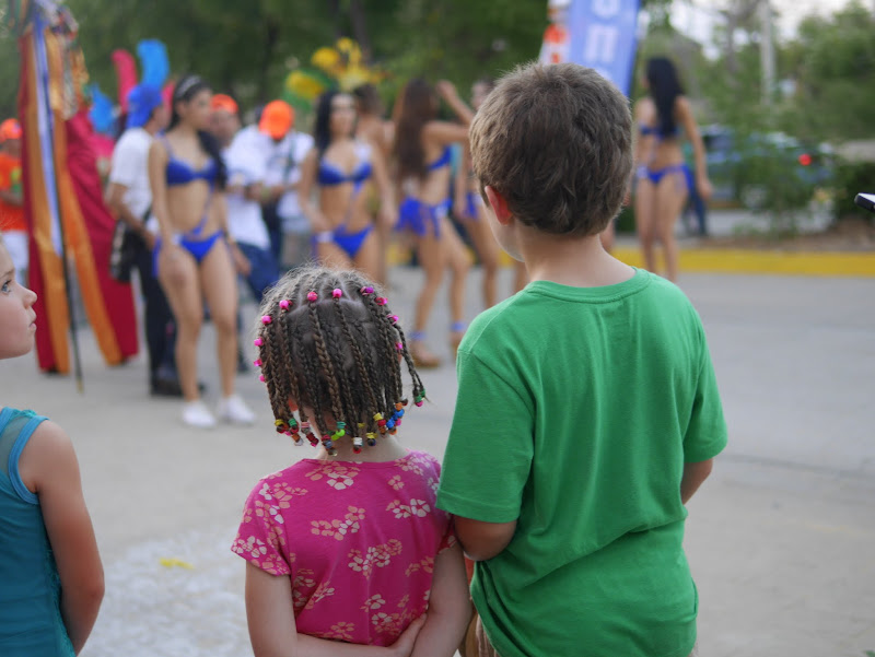 Maria and I were out shopping and had just returned with the latest find, a beautiful new sink. We were joking about how Maria was bringing everything home including the kitchen sink when we were almost trampled by our children and husbands on their way out to see a parade. The neighbour had stopped by informing them that there was to be a parade at six-thirty. We weren’t sure what the parade was for, but Maria thought it may have been for the fishing competition set to start over the weekend. Eager and excited we all walked to Benito Juarez Street to see the parade.