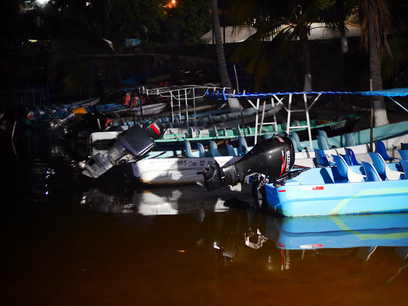 At seven o’clock at night we were picked up by a white van and driven at high speed to Manialtepec Lagoon, about 16km from Puerto Escondido. Once we arrived at our destination we were ushered onto a motor boat and then taken over the lagoon’s dark inky water. Our guide, who only spoke Spanish, talked about the unique biodiversity of the Lagoon. I did not understand much but Maria, our friend, translate bits and pieces for us. Eventually our tour guide stopped the boat and instructed us to dip a hand into the black water. The black water sparkled and shimmered as it slid between our fingers. It was amazing! These bioluminescent dinoflagellates (phosphorescent plankton) glow as a result of a chemical reaction that takes place when they are disturbed; it is a defense mechanism. The boat guide then lowered a ladder into the water and we were allowed to jump in. Those that jumped left a glowing splash behind. I quietly slid into the warm water and gently glided along the top. As I did the water sparkled and glowed over my arms, like the stars above. It was a magical experience for all. When I came out of the water my skin felt a little slimy and when I rubbed my arms and legs my skin continued to sparkle.