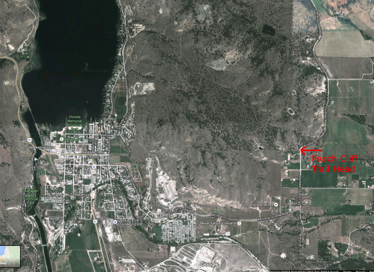 Peach Cliff mountain is well known landmark in Okanagan Falls, BC. We hiked through this area two years ago and while some aspects of our last hike were still fresh in my memory, others weren’t. I did remember how to access the trail head which is located off McLean Creek Road, close to Okanagan Falls. There is no signage marking the trail and not much parking either. Look for a fence and cattle gate beside which is small parking spot.