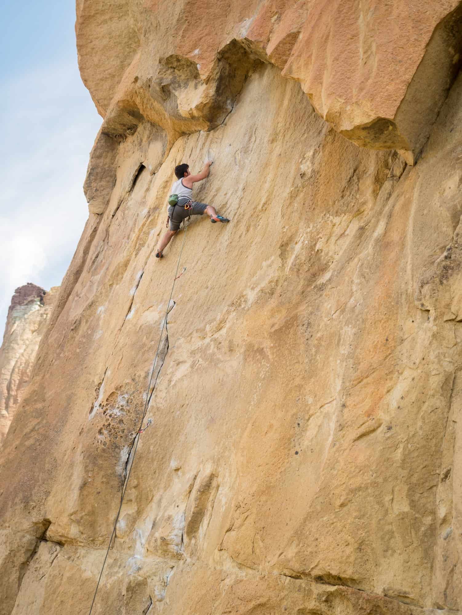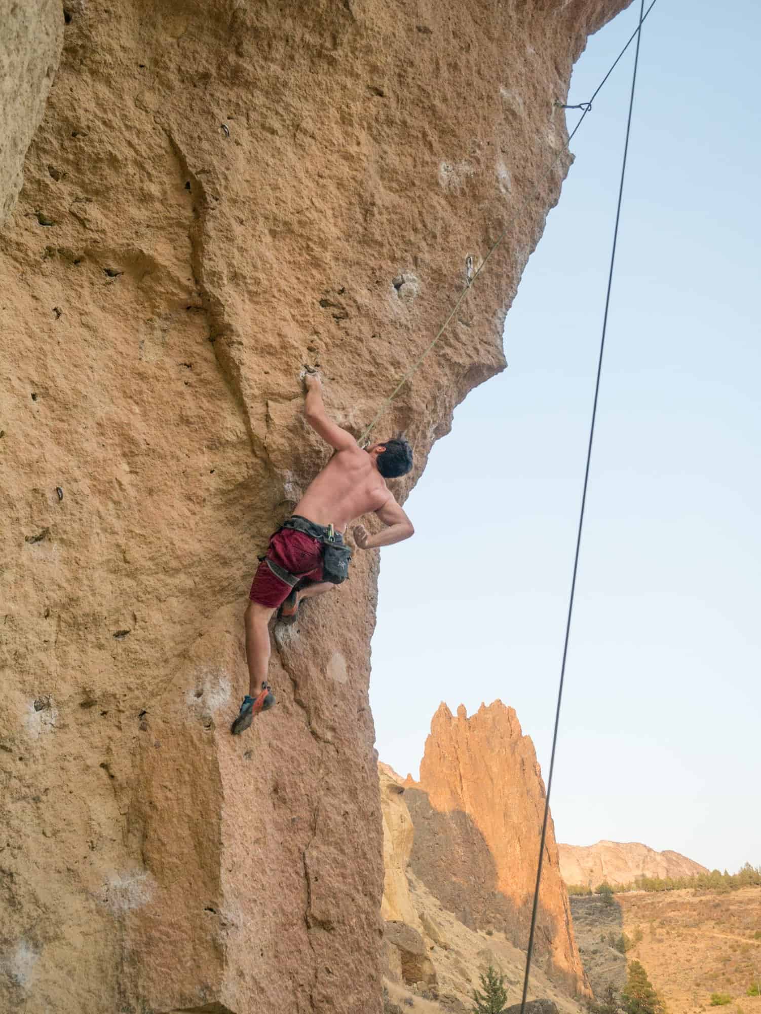 Morning Glory Wall is one of the most popular areas to climb at Smith Rock. You can spot this wall from afar with it’s towering face, large pockets and hoards of climbers. The wall gets a bit of shade first thing in the morning and then again in the late afternoon (around 5pm). As soon as the sun hits this wall it’s an instant oven, sweltering in the summer months, and warm in the cooler months. In the summer, the best time to climb this area is in the late afternoon (from about 5 to 8pm) but be ready to nab your preferred route because as soon as the shade comes so do the climbers.