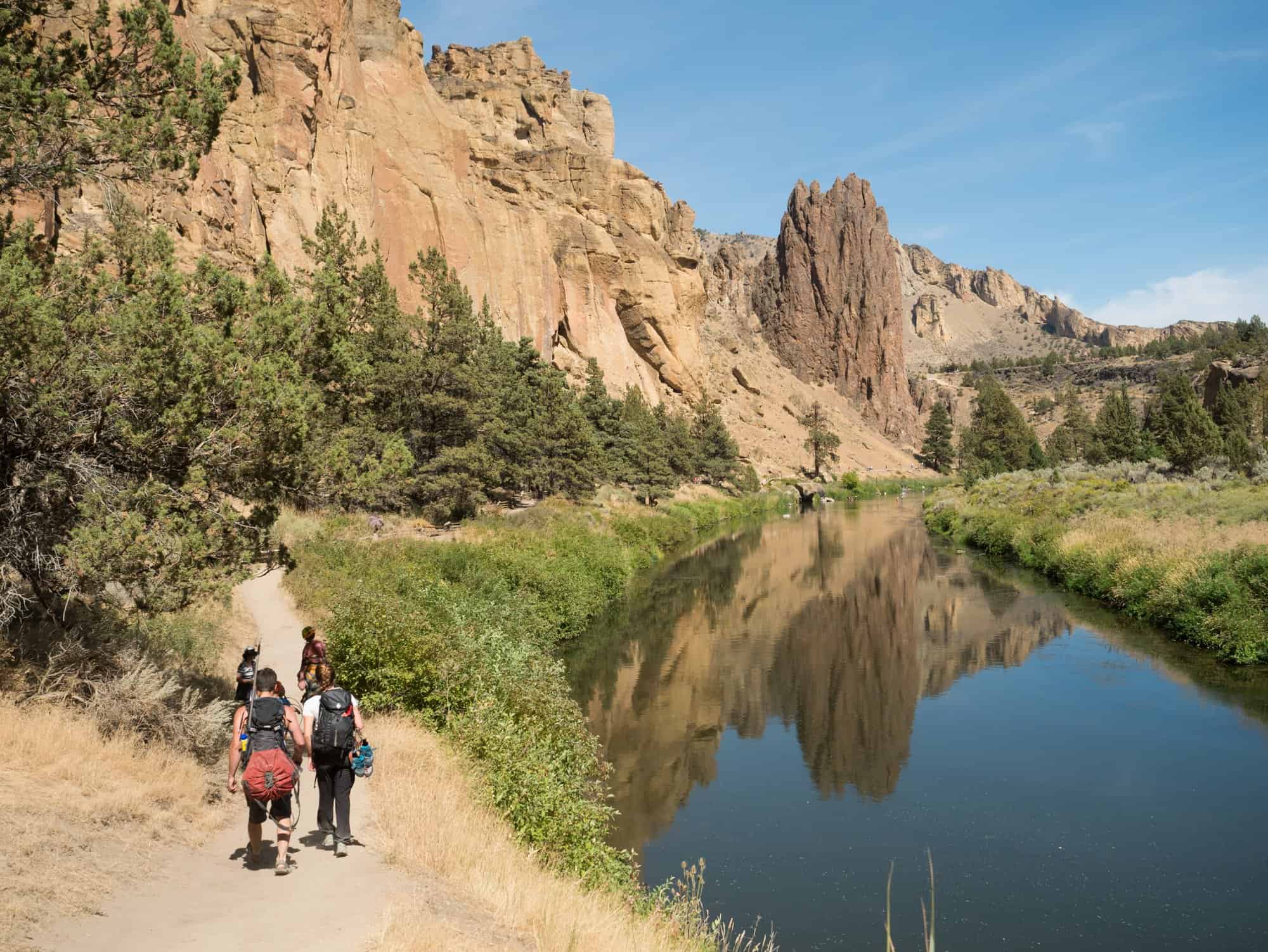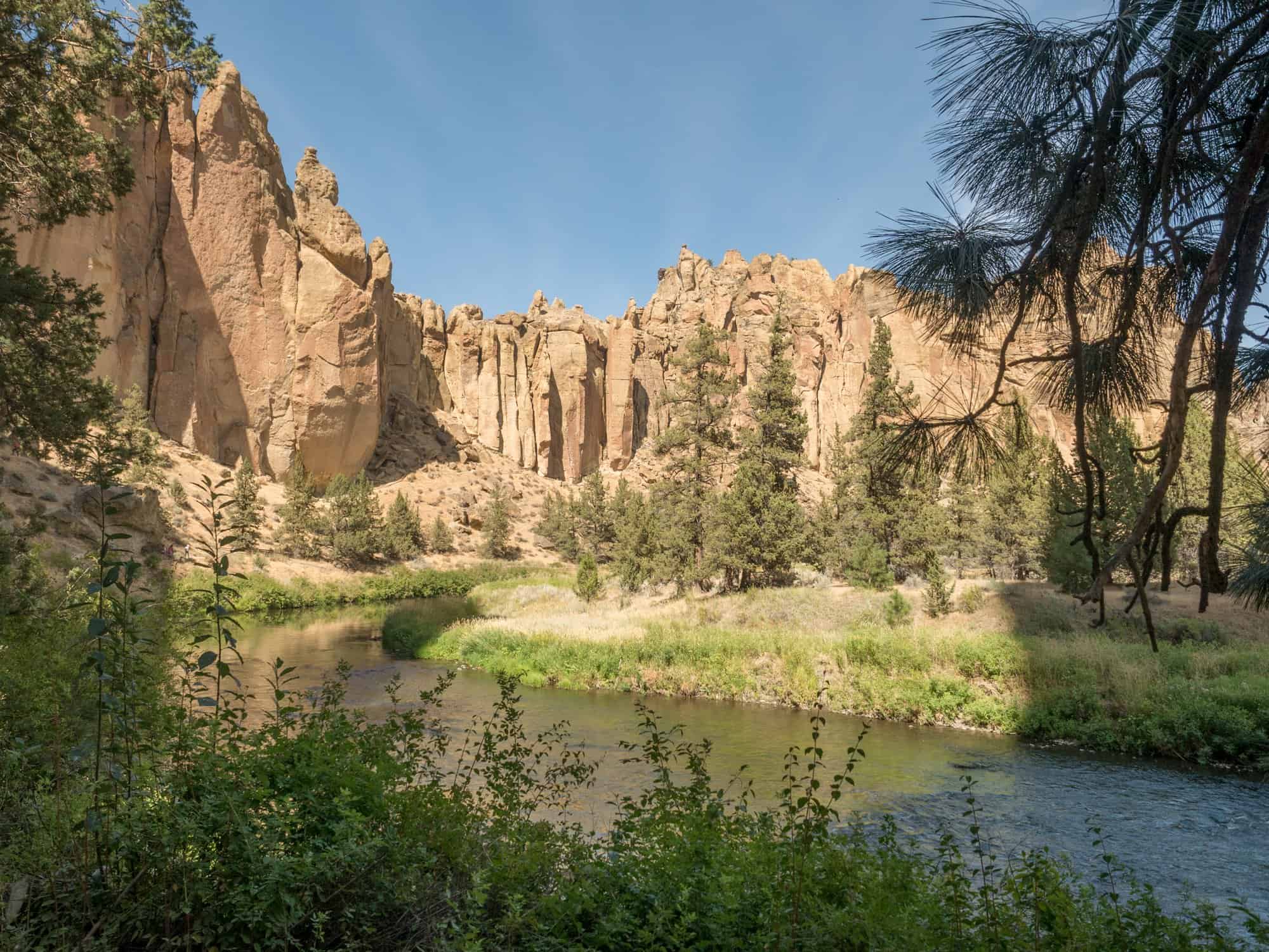 Smith Rock can be scorching hot in the summer months so staying hydrated is very important. If you’re climbing in the summer plan to take 2L (1/2 gallon) of water per person (including kids) for the day (minimum). There is a potable water refill station right before the bridge; take stock of your water supply regularly and refill as needed.