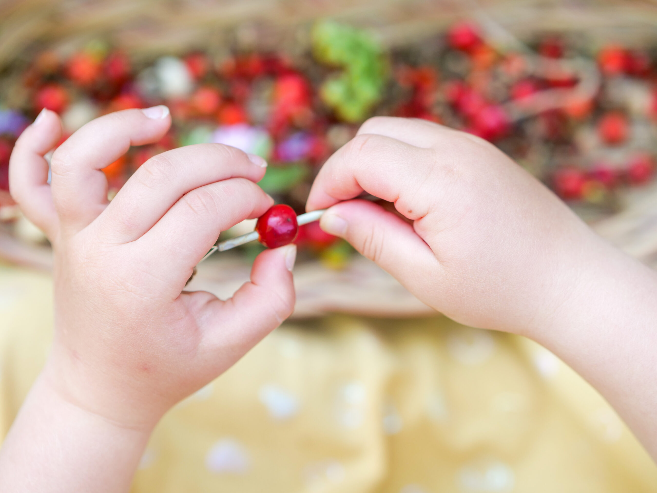 A Simple Rosehip Necklace Threading Craft for Preschoolers